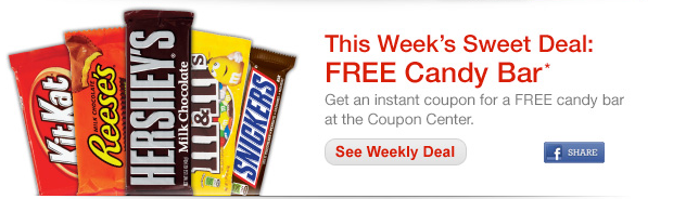 Free candy bar of your choice this week when you use your CVS card at the magic coupon machine. On sale this week for $0.99 - $0.99/1 coupon = Free!